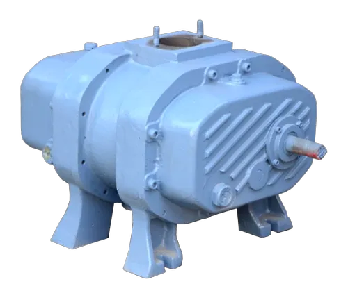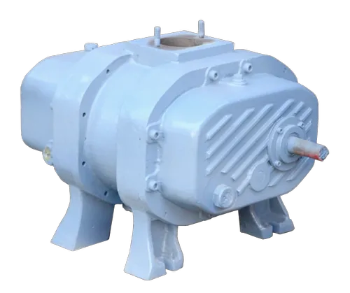 - Twin-lobe rotors mounted on parallel shafts with timing gears and oil seals.