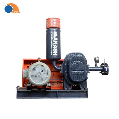 AKASH Roots Air Blower AB‑42 Model AB‑42 is a compact twin-lobe Roots blower designed for high-pressure, oil-free air delivery. It operates at speeds ranging from 800 to 1600 RPM, offering air delivery up to 138 m³/hr and pressure capabilities up to 10,000 MMWG, depending on application needs. Available in both air-cooled and water-cooled configurations, it ensures continuous, oil-free air applications.