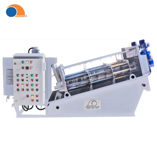 AKASH Sludge Dewatering Machines are advanced systems designed to efficiently separate solid and liquid components of sludge, facilitating easier and more cost-effective disposal. These machines utilize Multi-Disc Screw Press (MDSP) technology to achieve high dewatering performance with minimal energy consumption.