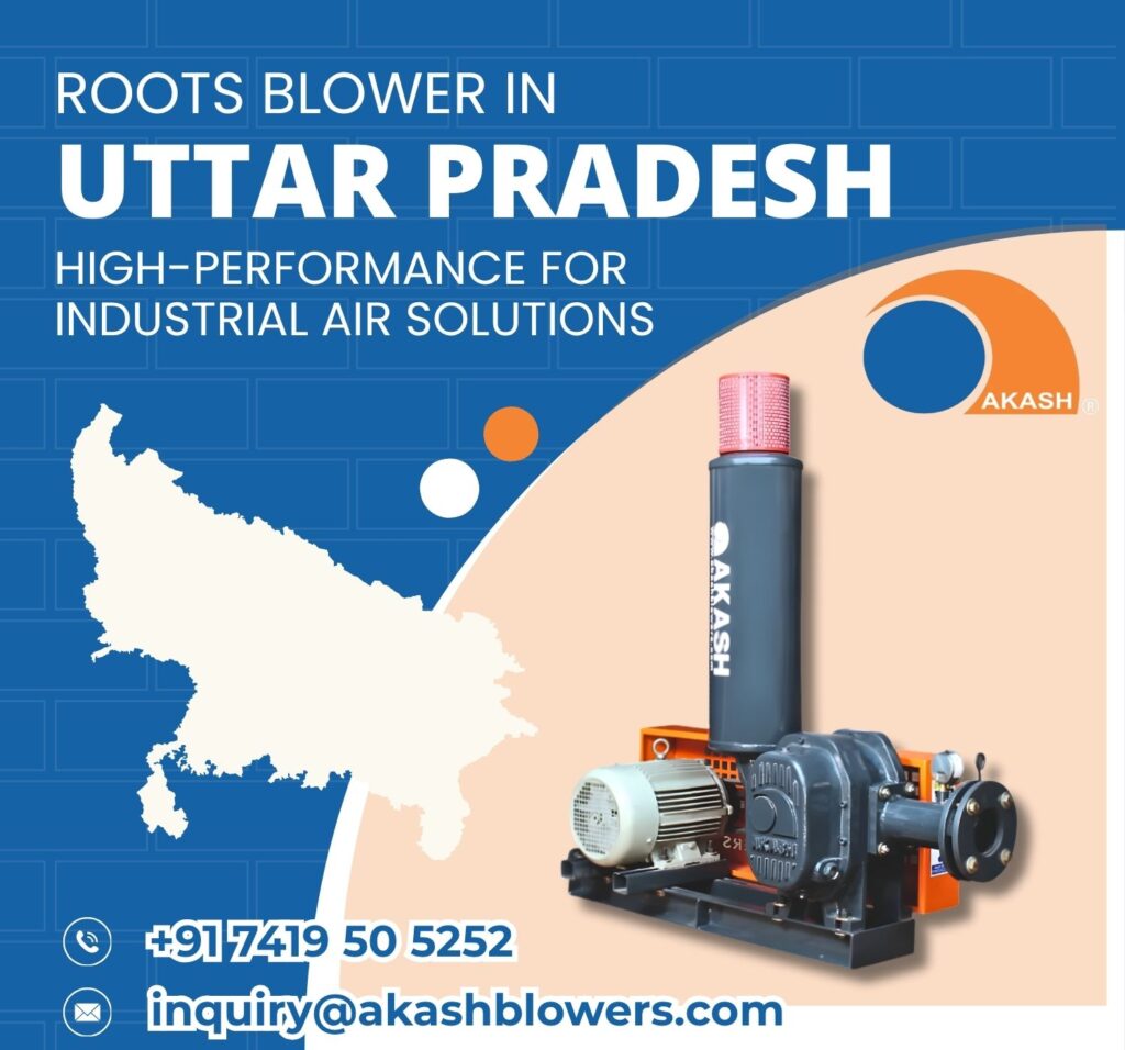 Roots blowers are widely used in wastewater treatment plants, cement industries, power plants, food processing units, and chemical industries across Uttar Pradesh.